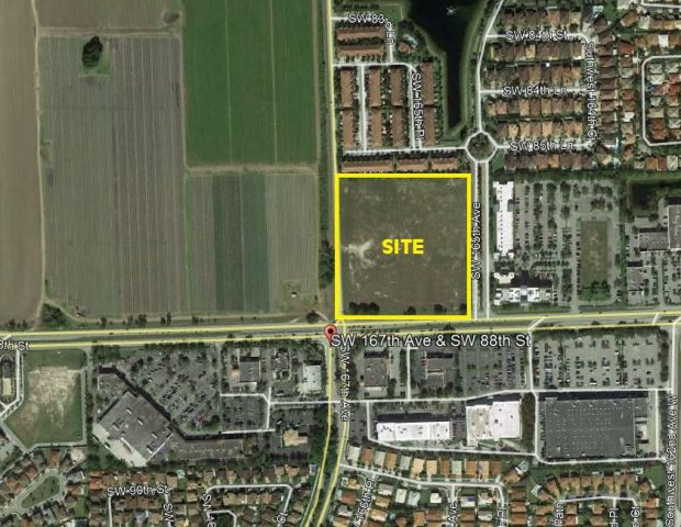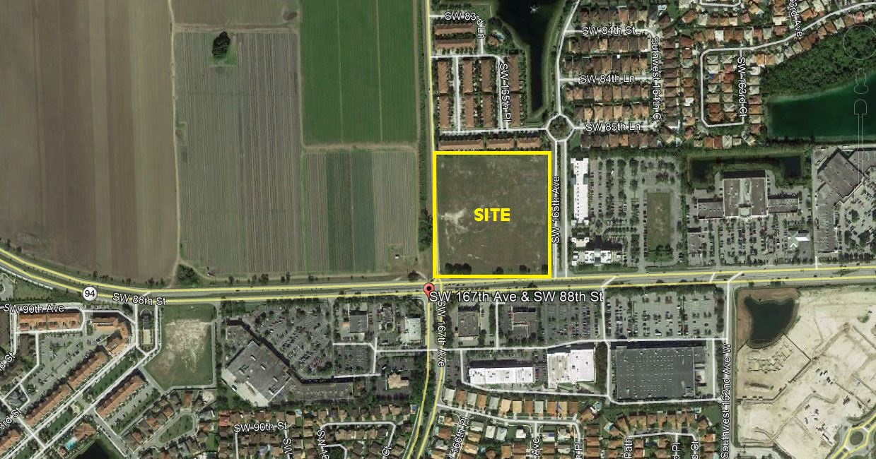 Located on SW 167 Avenue and SW 88 Street (Kendall Dr) one mile east of ST RD 997 (Krome Ave). Within a 3 mile radius there is a population density of approximately 205,000 households and holds a great position as the Miami area expands westward.